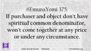 #EmunaYomi 375: If purchaser and object don’t have spiritual common denominator, won’t come together at any price or under any circumstance.