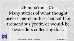 #EmunaYomi 376: Many stories of what thought useless merchandise that sold for tremendous profit, or would-be bestsellers collecting dust.