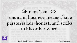 EmunaYomi #EmunaYomi 378 Date: March 1, 2020Author: ysspitz #EmunaYomi 378: Emuna in business means that a person is fair, honest, and sticks to his or her word. Share this: Share on X (Opens in new window) X Share on Facebook (Opens in new window) Facebook Like Loading... Related