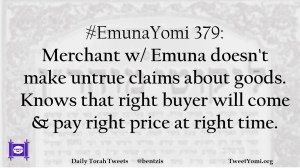 #EmunaYomi 379: Merchant w/ Emuna doesn’t make untrue claims about goods. Knows that right buyer will come & pay right price at right time.