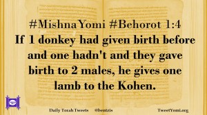 #MishnaYomi #Behorot 1:4 If 1 donkey had given birth before and one hadn’t and they gave birth to 2 males, he gives one lamb to the Kohen.