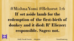 #MishnaYomi #Behorot 1:6 If set aside lamb for the redemption of the first-birth of donkey and it died: R’ Eliezer: responsible. Sages: not.