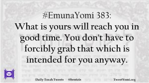 #EmunaYomi 383: What is yours will reach you in good time. You don’t have to forcibly grab that which is intended for you anyway.