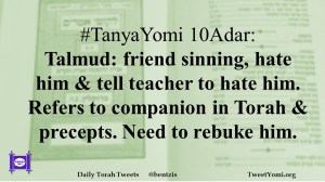 #TanyaYomi 10Adar: Talmud: friend sinning, hate him & tell teacher to hate him. Refers to companion in Torah & precepts. Need to rebuke him.