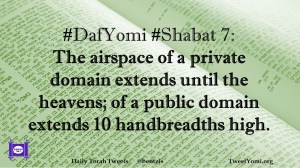 DafYomi, Shabat #DafYomi #Shabat 7 Date: March 13, 2020Author: ysspitz #DafYomi #Shabat 7: The airspace of a private domain extends until the heavens; of a public domain extends 10 handbreadths high. Share this: Share on X (Opens in new window) X Share on Facebook (Opens in new window) Facebook Like Loading... Related