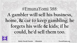 #EmunaYomi 388: A gambler will sell his business, home, & car to keep gambling; he forgets his wife & kids; if he could, he’d sell them too.