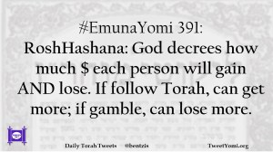 #EmunaYomi 391: RoshHashana: God decrees how much $ each person will gain AND lose. If follow Torah, can get more; if gamble, can lose more.