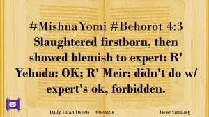 #MishnaYomi #Behorot 4:3 Slaughtered firstborn, then showed blemish to expert: R’ Yehuda: OK; R’ Meir: didn’t do w/ expert’s ok, forbidden.
