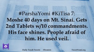 #ParshaYomi #KiTisa 7: Moshe 40 days on Mt. Sinai. Gets 2nd Tablets w/10 commandments. His face shines. People afraid of him. He used veil.