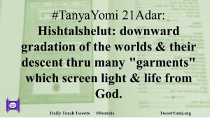 #TanyaYomi 21Adar: Hishtalshelut: downward gradation of the worlds & their descent thru many “garments” which screen light & life from God.