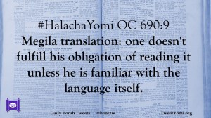 #HalachaYomi OC 690:9 Megila translation: one doesn’t fulfill his obligation of reading it unless he is familiar with the language itself.