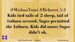 #MishnaYomi #Behorot 5:3 Kids tied tails of 2 sheep, tail of 1stborn severed. Sages permitted the 1stborn. Kids did more; Sages didn’t ok.