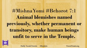 #MishnaYomi #Behorot 7:1 Animal blemishes named previously, whether permanent or transitory, make human beings unfit to serve in the Temple.