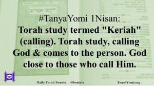 #TanyaYomi 1Nisan: Torah study termed “Keriah” (calling). Torah study, calling God & comes to the person. God close to those who call Him.