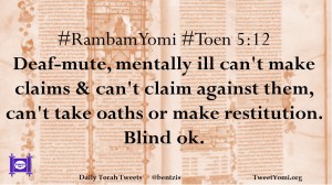 #RambamYomi #Toen 5:12 Deaf-mute, mentally ill can’t make claims & can’t claim against them, can’t take oaths or make restitution. Blind ok.