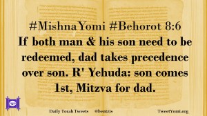 #MishnaYomi #Behorot 8:6 If both man & his son need to be redeemed, dad takes precedence over son. R’ Yehuda: son comes 1st, Mitzva for dad.