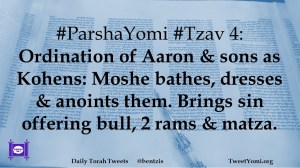 #ParshaYomi #Tzav 4: Ordination of Aaron & sons as Kohens: Moshe bathes, dresses & anoints them. Brings sin offering bull, 2 rams & matza.
