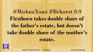 #MishnaYomi #Behorot 8:9 Firstborn takes double share of the father’s estate, but doesn’t take double share of the mother’s estate.