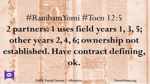 #RambamYomi #Toen 12:5 2 partners: 1 uses field years 1, 3, 5; other years 2, 4, 6; ownership not established. Have contract defining, ok.