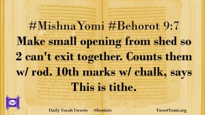 #MishnaYomi #Behorot 9:7 Make small opening from shed so 2 can’t exit together. Counts them w/ rod. 10th marks w/ chalk, says This is tithe.