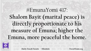 #EmunaYomi 417: Shalom Bayit (marital peace) is directly proportionate to his measure of Emuna; higher the Emuna, more peaceful the home.