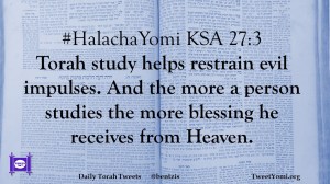 #HalachaYomi KSA 27:3 Torah study helps restrain evil impulses. And the more a person studies the more blessing he receives from Heaven.