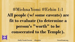 #MishnaYomi #Erhin 1:1 All people (w/ some caveats) are fit to evaluate (to determine a person’s “worth” to be consecrated to the Temple).