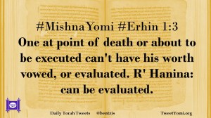 #MishnaYomi #Erhin 1:3 One at point of death or about to be executed can’t have his worth vowed, or evaluated. R’ Hanina: can be evaluated.