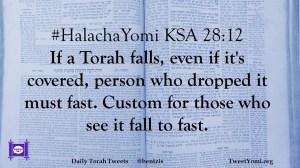 #HalachaYomi KSA 28:12 If a Torah falls, even if it’s covered, person who dropped it must fast. Custom for those who see it fall to fast.
