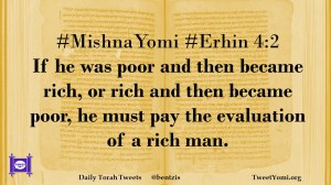 #MishnaYomi #Erhin 4:2 If he was poor and then became rich, or rich and then became poor, he must pay the evaluation of a rich man.