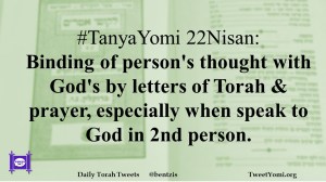 #TanyaYomi 22Nisan: Binding of person’s thought with God’s by letters of Torah & prayer, especially when speak to God in 2nd person.