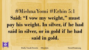 #MishnaYomi #Erhin 5:1 Said: “I vow my weight,” must pay his weight. In silver, if he had said in silver, or in gold if he had said in gold.