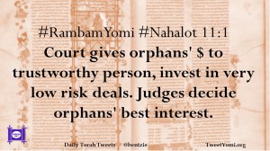 #RambamYomi #Nahalot 11:1 Court gives orphans’ $ to trustworthy person, invest in very low risk deals. Judges decide orphans’ best interest.