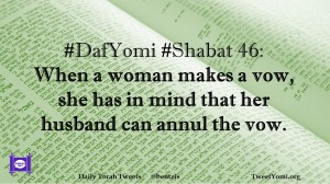 DafYomi, Shabat #DafYomi #Shabat 46 Date: April 22, 2020Author: ysspitz #DafYomi #Shabat 46: When a woman makes a vow, she has in mind that her husband can annul the vow. Share this: Share on X (Opens in new window) X Share on Facebook (Opens in new window) Facebook Like Loading... Related