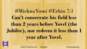 #MishnaYomi #Erhin 7:1 Can’t consecrate his field less than 2 years before Yovel (the Jubilee), nor redeem it less than 1 year after Yovel.