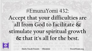 #EmunaYomi 432: Accept that your difficulties are all from God to facilitate & stimulate your spiritual growth & that it’s all for the best.