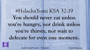 #HalachaYomi KSA 32:19 You should never eat unless you’re hungry, nor drink unless you’re thirsty, nor wait to defecate for even one moment.