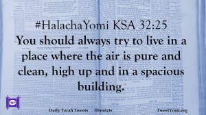 #HalachaYomi KSA 32:25 You should always try to live in a place where the air is pure and clean, high up and in a spacious building.