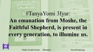 TanyaYomi #TanyaYomi 3Iyar Date: April 27, 2020Author: ysspitz #TanyaYomi 3Iyar: An emanation from Moshe, the Faithful Shepherd, is present in every generation, to illumine us. Share this: Share on X (Opens in new window) X Share on Facebook (Opens in new window) Facebook Like Loading... Related