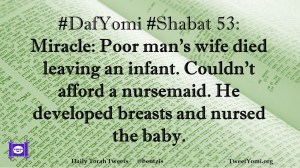 DafYomi, Shabat #DafYomi #Shabat 53 Date: April 29, 2020Author: ysspitz #DafYomi #Shabat 53: Miracle: Poor man’s wife died leaving an infant. Couldn’t afford a nursemaid. He developed breasts and nursed the baby. Share this: Share on X (Opens in new window) X Share on Facebook (Opens in new window) Facebook Like Loading... Related