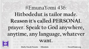 #EmunaYomi 436: Hitbodedut is tailor made. Reason it’s called PERSONAL prayer. Speak to God anywhere, anytime, any language, whatever want.