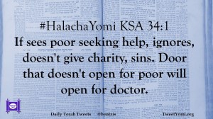 #HalachaYomi KSA 34:1 If sees poor seeking help, ignores, doesn’t give charity, sins. Door that doesn’t open for poor will open for doctor.