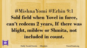 #MishnaYomi #Erhin 9:1 Sold field when Yovel in force, can’t redeem 2 years, If there was blight, mildew or Shmita, not included in count.