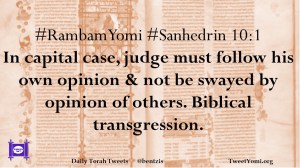 #RambamYomi #Sanhedrin 10:1 In capital case, judge must follow his own opinion & not be swayed by opinion of others. Biblical transgression.