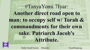 #TanyaYomi 7Iyar: Another direct road open to man: to occupy self w/ Torah & commandments for their own sake. Patriarch Jacob’s Attribute.