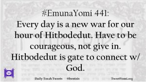 #EmunaYomi 441: Every day is a new war for our hour of Hitbodedut. Have to be courageous, not give in. Hitbodedut is gate to connect w/ God.