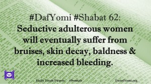 DafYomi, Shabat #DafYomi #Shabat 62 Date: May 7, 2020Author: ysspitz #DafYomi #Shabat 62: Seductive adulterous women will eventually suffer from bruises, skin decay, baldness & increased bleeding. Share this: Share on X (Opens in new window) X Share on Facebook (Opens in new window) Facebook Like Loading... Related
