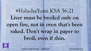 #HalachaYomi KSA 36:21 Liver must be broiled only on open fire, not in oven that’s been raked. Don’t wrap in paper to broil, even if thin.