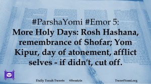 #ParshaYomi #Emor 5: More Holy Days: Rosh Hashana, remembrance of Shofar; Yom Kipur, day of atonement, afflict selves – if didn’t, cut off.