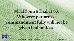 DafYomi, Shabat #DafYomi #Shabat 63 Date: May 8, 2020Author: ysspitz #DafYomi #Shabat 63: Whoever performs a commandment fully will not be given bad notices. Share this: Share on X (Opens in new window) X Share on Facebook (Opens in new window) Facebook Like Loading... Related